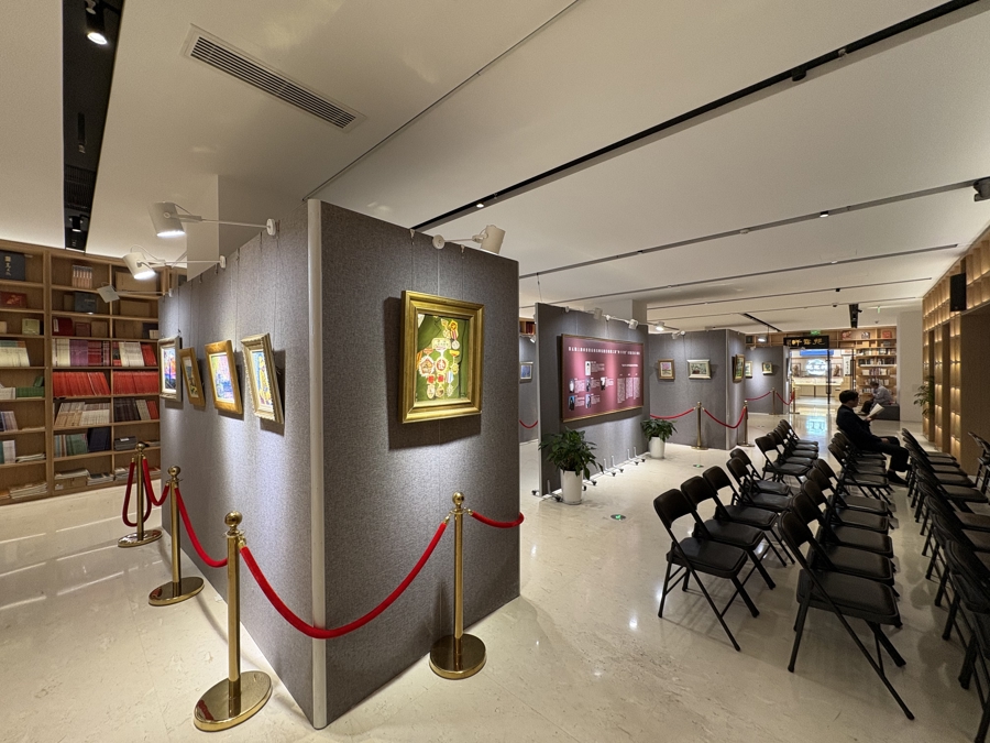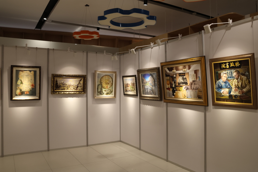 展览分两个板块。书城三楼的“绘红致学”板块展陈红色主题油画。六楼的“色彩印象”板块则呈现基地通过上海市名师工程“种子计划”,在6所中小学校中征集的“向印象派学习”作品。