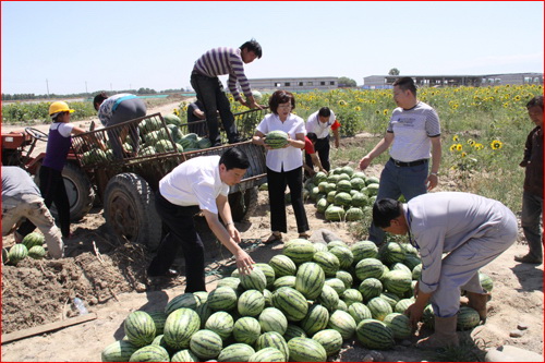 七月流火、驕陽肆意,華春集團心系一線職工。7月9日,華春黨委、工會及行政管理人員一行5人,代表董事局主席兼總裁李成功先生和華春全體員工,前去五家渠華春毛紡工業園施工現場,慰問頂著酷暑奮戰在一線的職工及施工、監理等現場技術管理人員,送去了3.6噸西瓜、300件礦泉水等慰問品,為他們送上華春全員的一片關懷之情。