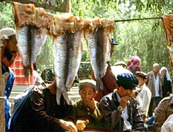烤魚是最通常的一種吃法,但到了庫爾勒,烤魚也顯出了不同,魚是博斯騰湖鮮嫩肥美肉質清甜的小魚,水是博斯滕湖千年雪山融匯而來的純凈雪水,魚肉隨意的穿在小木棍上轉動翻烤,只刷上孜然、鹽巴和酥油,慢慢的就香氣四溢了。新疆聞名的是烤全羊,但庫爾勒的烤魚卻肯定是更清爽適口的選擇。