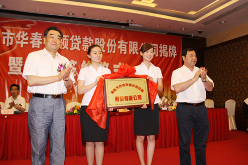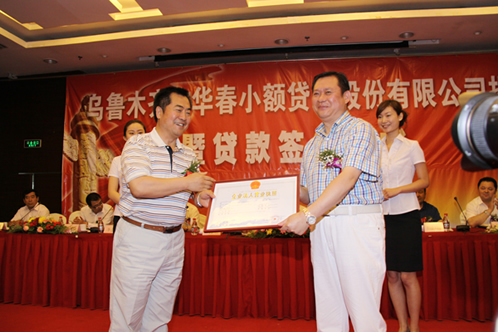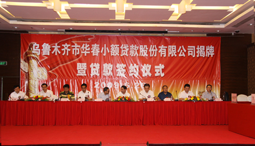 烏魯木齊市經濟委員會黨組書記、主任、烏魯木齊市小額貸款公司試點工作領導小組辦公室奚永生主任宣讀批準文件,烏魯木齊市工商行政管理局局書記王同晌向華春小額貸款股份公司法人李成功先生頒發了工商營業執照。
