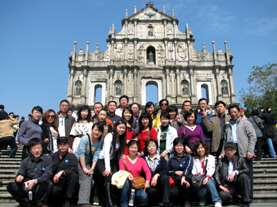 由香港借渡輪前往澳門,“賀國慶、慶回歸”的巨標(biāo),提醒著人們這里剛剛舉行過澳門回歸10周年的慶典。穿越了五百年的歷史,今天擺脫了殖民地的澳門,除了葡萄牙駐澳門總領(lǐng)事官邸掛著的一面綠色葡萄牙國旗外,其它皆是中華人民共和國國旗和澳門區(qū)旗,顯示著回歸的澳門,其背后有著強(qiáng)大祖國的支持。