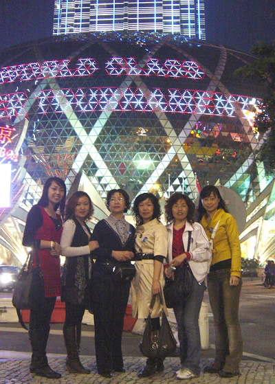 澳門以彩博業(yè)的歷史悠久而著稱,入夜,霓虹閃爍、奢華無比,金莎、巴比倫、金龍等娛樂場所比比皆是。欲望在賭場里橫流,賭客不僅僅是青壯年,不乏白發(fā)長者。有興趣的團(tuán)員也小賭了一把,親身體驗了下一國兩制的特色。