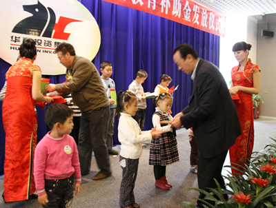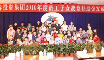 10月24日,在新疆華春投資集團舉辦的2010年度的員工子女教育補助金發放儀式上,華春員工的119名子女從學前班的孩子到在校大學生相聚在一起,一派喜氣洋洋、興高采烈,如同慶祝一個喜慶的節日,華春為員工的子女發放了近10萬元的教育補助金。自治區工商聯的領導和自治區黨委政研室有關部門的負責人,參加了發放儀式并為華春員工的子女發放補助金。