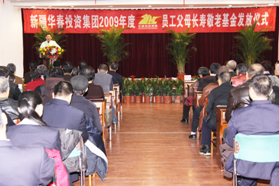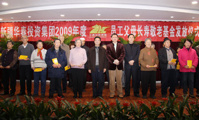 11月25日上午,新疆華春投資集團在科學院質量苑賓館舉辦了2009年度員工父母長壽敬老基金的發放儀式。首次發放長壽敬老基金22萬多元,近百位華春員工的父母一個個手捧著裝有長壽敬老基金的紅包,滿臉洋溢著幸福和喜悅。