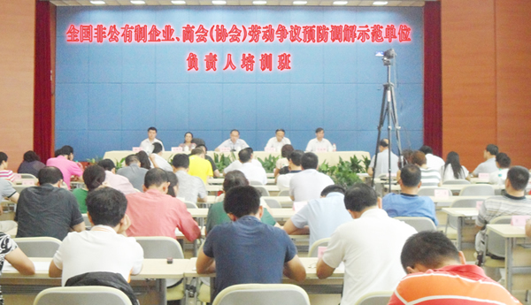 國家高度重視示范工作的進行,由國家人力資源社會保障部、人事司、調(diào)解仲裁管理司和中華全國工商聯(lián),共同組織對被確定為全國勞動爭議預防調(diào)解示范單位的負責人進行集中培訓。人社部仲裁管理司、全國工商聯(lián)、全國總工會、上海財經(jīng)大學法學院、中國人大勞動人事學院教授、上海市人社部仲裁院院長等領(lǐng)導和專家,從不同角度解讀了在新形勢下預防勞動爭議的思路和主要任務及有關(guān)政策、法律知識、疑難案件的評析、勞資的協(xié)商等有關(guān)勞動關(guān)系、勞動爭議的理論知識,以保障示范工作的有效開展。
