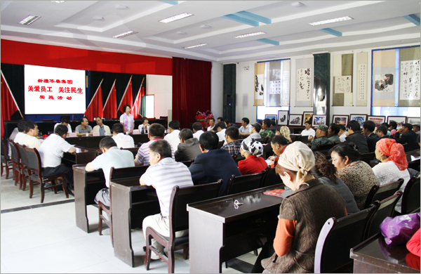在北塔山牧場場部舉辦的座談會上,華春工會主席向來自全牧場各牧業連隊的基層負責人,全面概括的講解了華春的主要產業、企業戰略和優秀企業文化。為加快少數民族貧困地區的脫貧致富、安排更多的少數民族人員就業,華春集團注重大力發展毛紡產業。位于五家渠市的華春毛紡工業園作為傳統產業,可直接安排近千人就業,并能帶動上下游產業鏈的發展,尤其是基層農牧區的農牧民生產和就業。華春有決心做強做大新疆毛紡產業,振興民族產業,為吸納更多的少數民族富余勞動力就業,做出應有的貢獻。
