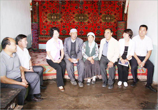 華春慰問組與五家渠師市有關領導在北塔山牧場負責人的陪同下,驅車先后來到下面的各牧業連隊,慰問那里的困難牧民。那些受到華春資助的困難牧民家庭,當接過華春慰問組給他家送來的500元慰問金時,感動得一時不知說什么好。對于他們素不相識的華春,卻特地在他們過節之前,來到他們都極少走出去的山溝,給予他們資金上的幫助。北塔山牧場畜牧二隊的卡斯木別克•努熱阿合麥提、牧場畜牧一隊的蘭黑恩•薩納提等牧民,一定要華春慰問組人員留下喝茶,要把過節的羊宰了招待華春人。看到華春慰問組人員謝絕而要離開他們時,緊緊握著華春慰問組人員的手。