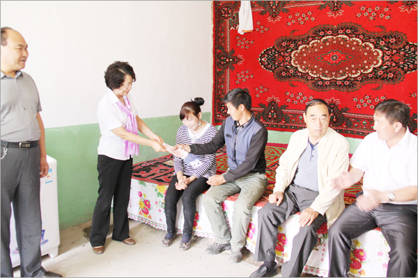 在少數民族傳統節日肉孜節即將到來前的8月4日-5日,為使新疆華春投資集團下屬的華春毛紡公司穆斯林員工和五家渠農六師少數民族貧困牧民能夠過上一個愉快、祥和的節日,華春集團工會主席高青和集團人力資源部部長胡梅、集團下屬的華春毛紡公司總經理助理白寶兵及集團編網部汪剛等一行4人組成的慰問組,代表李成功總裁和華春全員,與五家渠師市主管經濟和勞動就業的有關領導一同來到北塔山牧場,親切看望了在五家渠華春毛紡工業園工作的哈薩克族員工的家庭,同時,對北塔山牧場十多個困難牧民家庭進行了慰問,并為每戶送去500元的慰問金,獻上華春集團的一份心意。