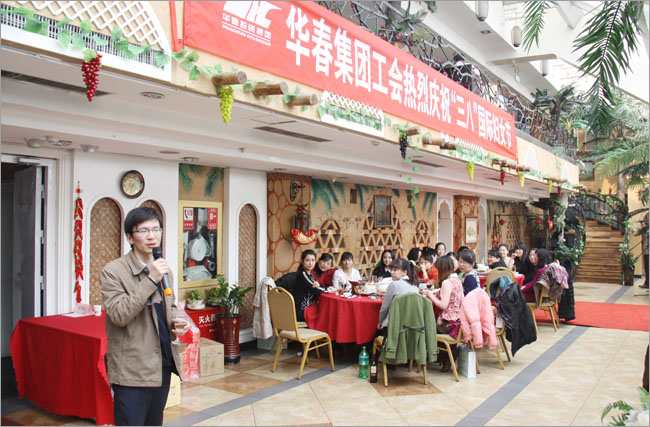 在 “三八”國(guó)際勞動(dòng)?jì)D女節(jié)即將到來(lái)之際,華春集團(tuán)工會(huì)于3月7日舉辦了慶“三八”活動(dòng),集團(tuán)和下屬子公司的女員工約90人相聚于象牙樓共同慶祝三八節(jié)。集團(tuán)部分男性高管盡管重任在肩、任務(wù)重重,但他們放下手上的諸多工作,前來(lái)與女同胞歡聚一堂,共慶這個(gè)令全世界婦女為之驕傲和自豪的盛大節(jié)日。