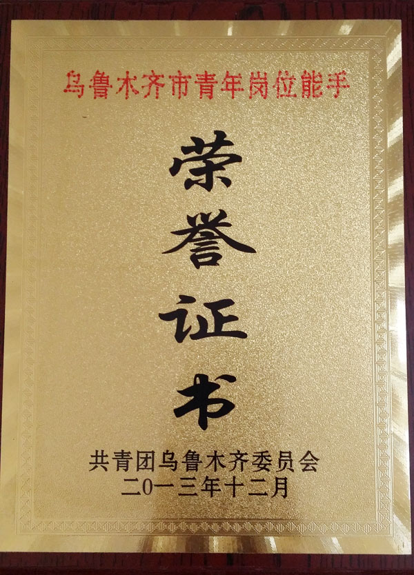 獲得以上榮譽的,是在市團委于2013年度為促進烏魯木齊市的經濟社會穩定發展,開展的以職業道德和誠信節約為核心、以促進基層管理為重點的豐富多彩富有成效的活動中涌現出來的先進集體和個人。