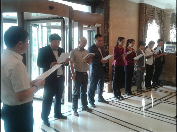出色的業績源于專業的團隊,專業的團隊源于點滴的努力。5月16日早上10:00整,由人力資源部總監兼部長鐘江華牽頭,與銷售中心全員針對晨會的流程進行演練,以此來規范并確定晨會的相關事宜。