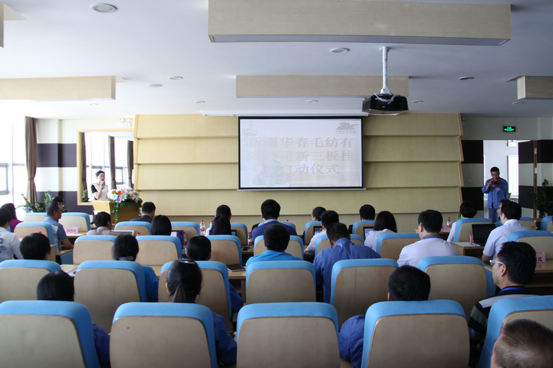 新疆華春投資集團下屬的子公司新疆華春毛紡有限公司新三板啟動儀式于5月26日在華春毛紡工業園舉辦,華春集團高管團隊與華春毛紡中高層管理人員及合作單位宏源證券公司、大華會計師事務所、縱橫律師事務所負責人參加了儀式。