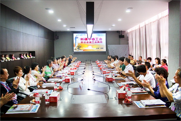 8月3日,臺灣勞動人權(quán)協(xié)會羅美文會長一行28人在自治區(qū)統(tǒng)戰(zhàn)部、總工會領(lǐng)導(dǎo)的陪同下,蒞臨新疆華春投資集團(tuán)進(jìn)行參觀訪問。