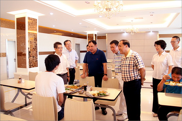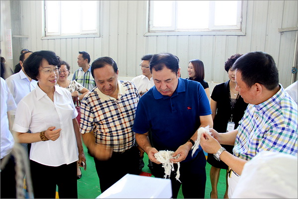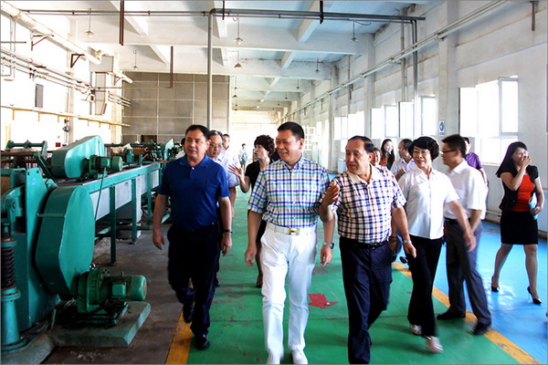 肖開提·依明常委一行首先參觀了新疆華春投資集團下屬的子公司華春毛紡AAA級旅游工業園區,關心的了解該高檔羊絨加工生產基地的生產經營銷售情況。調研過程中當得知在全球經濟都下滑的形勢下,而華春的高檔羊絨制品出口銷售卻逆勢增長感到非常欣慰。接著,肖開提·依明常委一行來到員工餐廳,了解員工的工作與生活情況,鼓勵員工不斷學習創新,與企業一同成長。