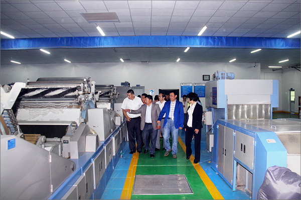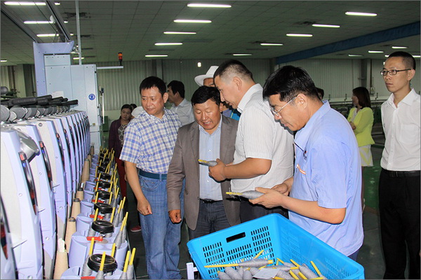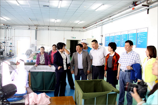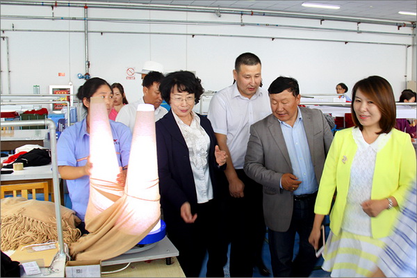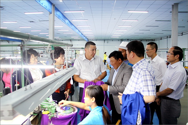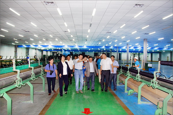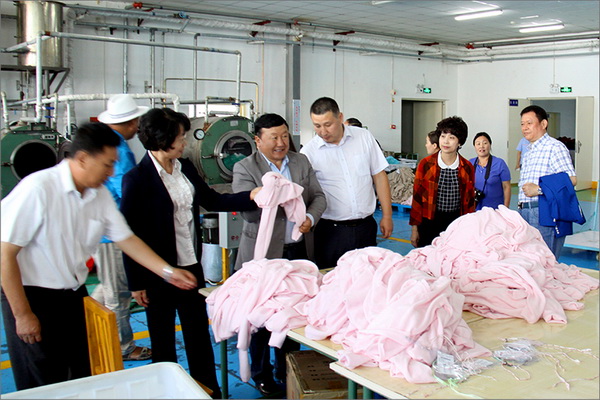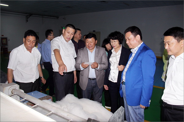 策文繞登省長一行對華春集團下屬的子公司華春毛紡工業園進行了考察,在參觀了以現代化設備加工生產高檔羊絨制品的全過程后,與華春集團就羊絨原料的戰略采購合作進行了詳細全面的洽談。李成功總裁向策文繞登省長一行介紹了華春毛紡產業今后發展的總體戰略規劃、華春毛紡工業園一期每年的生產原料所需量和產品出口及品牌建設目標等情況,希望在中國建設絲綢之路經濟帶的重大歷史機遇下,共享新絲綢之路經濟帶構想帶來的互惠互利。策文繞登省長介紹了蒙古國科布多省畜牧業羊絨生產的基本狀況。他表示,希望與華春集團建立長期的羊絨供貨合作關系,以帶動蒙古國科布多省畜牧業的發展。