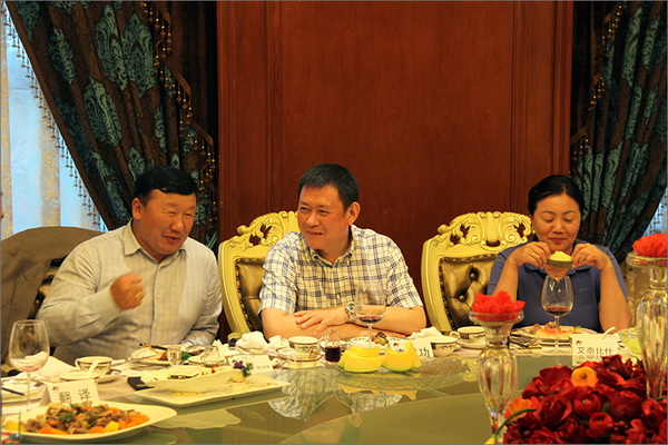 8月15日,在兵團五家渠師市領導的陪同下,蒙古國科布多省省長策文繞登率領的代表團一行,前來新疆華春投資集團進行參觀交流,并商談戰略合作。華春集團董事局主席兼總裁李成功先生與集團高管人員李榮桂、高青及華春毛紡相關管理人員參加了座談。