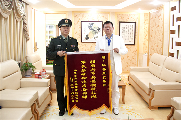 新疆華春投資集團在總裁李成功先生的帶領下,不但在關注民生、誠實守信方面是新疆乃至全國的典范,而且在擁軍優屬、國防教育工作等方面,同樣做出了突出的成績,受到中國人民解放軍烏魯木齊陸軍預備役通信團的表彰。