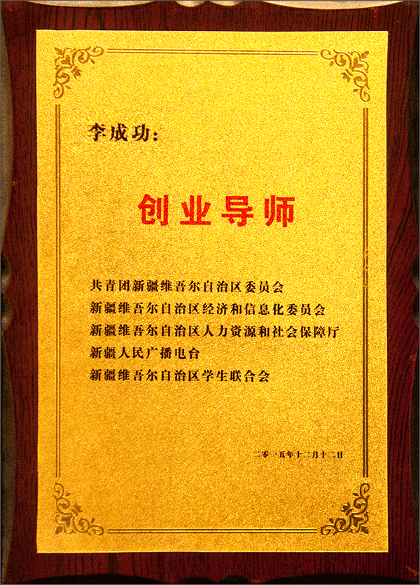 由新疆人民廣播電臺、自治區(qū)團委、自治區(qū)經信委、自治區(qū)人社廳及自治區(qū)學生聯(lián)合會四家單位共同舉辦的新疆第二屆創(chuàng)業(yè)導師校園行活動總結表彰暨創(chuàng)業(yè)導師頒獎盛典,于12月16日在新疆電臺隆重舉行。對李成功總裁等企業(yè)家創(chuàng)業(yè)導師進行了表彰,頒發(fā)了創(chuàng)業(yè)導師聘書牌匾。