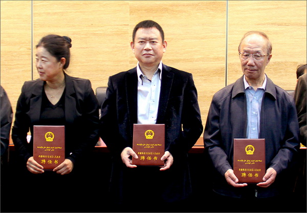 自治區政府主席向新疆華春投資集團總裁李成功頒發館員聘書