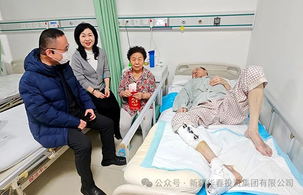 在新疆地區寒流襲來之際的2月22日,新疆華春投資集團董事局主席兼總裁李成功先生在得知員工王剛的父親因病重住院后,立即委派向紅玲總監與行政辦執行主任劉星帶著3000元慰問金,趕赴醫院看望了員工的父親。他們詢問了老人的病情和治療情況,鼓勵老人保持樂觀的心態,積極配合治療。同時,他們也向員工及其家人轉達了總裁的問候和企業的關懷,體現了企業對員工及其家人的深切關懷,為這個寒冷的冬天帶來了一股暖流。