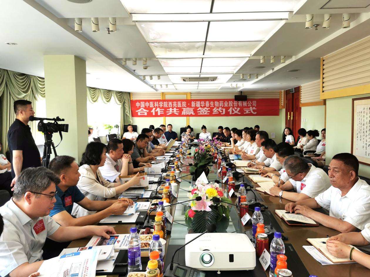 6月29日,在第八屆中國——亞歐博覽會舉行期間,中國中醫科學院西苑醫院正式與新疆華春生物藥業股份有限公司簽約,雙方共同啟動1.1類創新中藥的研發和產業化推廣。