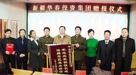 同時,華春投資集團也希望通過此次擁軍活動,與69083部隊建立長期良好的軍地關系,讓我們無論在軍界、還是在商界,都聯起手來,為了我們共同的目標,即推進新疆的經濟建設和保持新疆的社會穩定,而貢獻力量。
