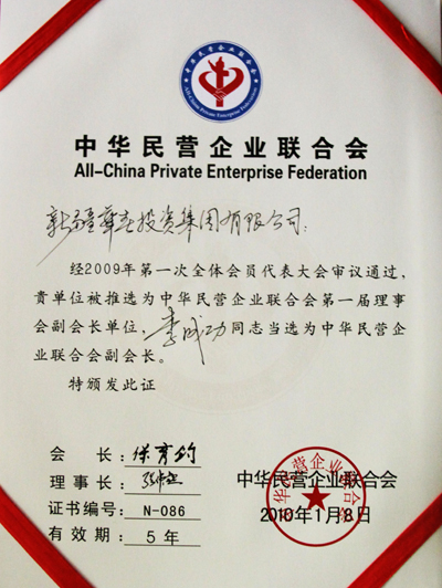 于新一年的1月底在北京召開的中華民營企業(yè)聯合會年會和中國民營科技實業(yè)家協(xié)會2010年新春團拜會上,總裁李成功先生分別當選為中華民營企業(yè)聯合會副會長和中國民營科技實業(yè)家協(xié)會副理事長,華春投資集團成為中華民營企業(yè)聯合會副會長單位。同時,華春投資集團還在由中國品牌發(fā)展組織委員會舉辦的評選活動中榮獲2009中國品牌社會責任貢獻獎,總裁李成功先生被授予2009中國品牌創(chuàng)新人物稱號。