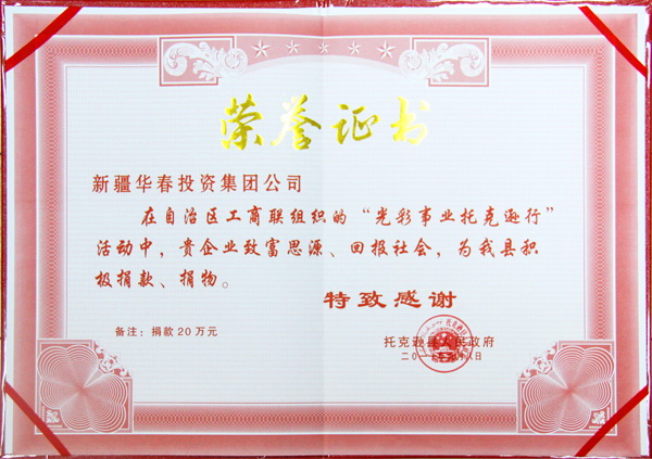 此次捐贈款項用于解決托克遜縣農(nóng)牧民困難群眾生產(chǎn)資金周轉(zhuǎn)和貧困家庭子女上學等問題。華春集團以企業(yè)的社會責任感,歷來重視扶貧事業(yè),積極參與光彩事業(yè),回饋社會,為構(gòu)建和諧新疆做出了民營企業(yè)的一份貢獻。