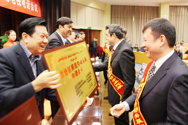 自治區領導給華春投資集團總裁李成功先生頒獎