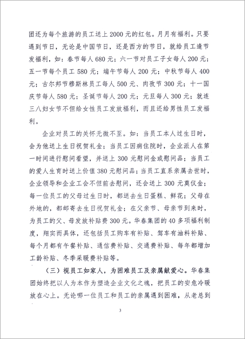 我們完全有理由相信,隨著華春企業的發展,華春投資集團無論是對內對外,將會讓每一個員工及家人都過上幸福的生活,將會為社會的和諧做出更大貢獻!