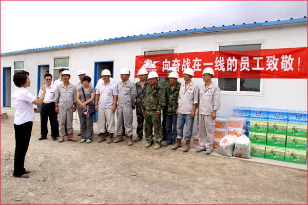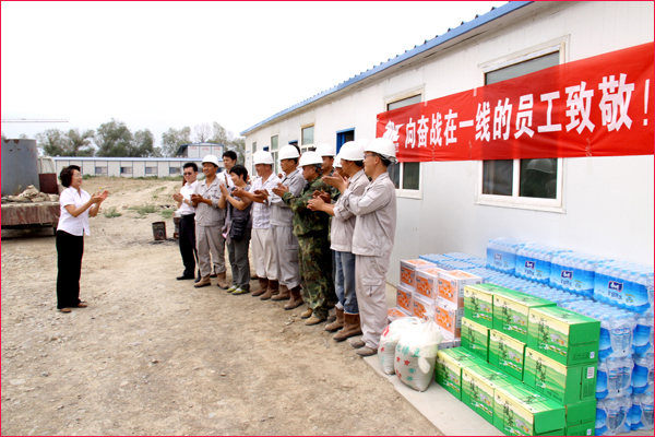 6月30日,新疆華春投資集團工會主席高青和行政辦副主任鄭培君、華春集團子公司新疆恒潤實業有限公司辦公室主任及集團編輯部全員一行,將一箱箱的統一綠茶和茉莉蜜茶、一件件的純凈水及綠豆、冰糖、白糖等降溫防暑飲料與物品,送給奮戰在五家渠華春毛紡工業園項目建設工地的一線員工,同時也送去了李成功總裁和華春全員的關愛之心。一線員工們接到公司送來的慰問品,深深感受到公司的關懷,“感謝李總裁對我們的關心!謝謝公司對我們的慰問看望!”