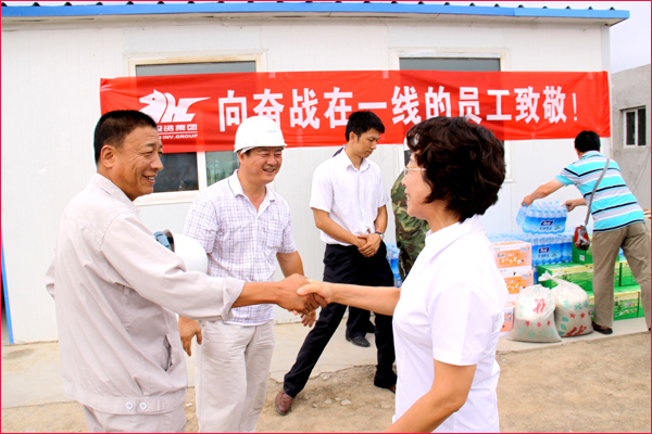 關愛員工,是華春企業文化的精髓。入夏天氣持續高溫,炎熱異常,但五家渠華春毛紡工業園項目建設工地的員工們,頂烈日、戰酷暑,堅守在崗位。華春集團心系一線員工,自6月下旬以來,集團行政辦與有關子公司管理層都前去慰問。中國關愛員工優秀民營企業家李成功總裁,還特地于端午節親臨工地現場,親切看望慰問了員工與施工單位的工作人員。華春集團與總裁李成功先生的關心,極大的鼓舞著一線員工的工作熱情,大家決心要以實際行動發揚工人階級頑強拼搏的精神,有序推進工程建設,為華春毛紡工業園項目早日建成做出貢獻。