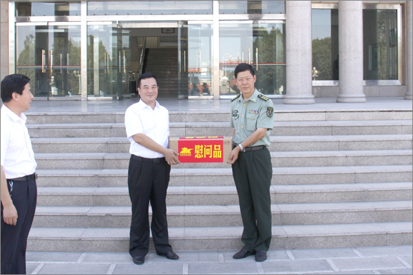 為密切軍民關系,營造濃厚的愛國主義擁軍氛圍,在“八一”建軍節來臨之際,7月31日,由新疆華春投資集團副總裁常青、黨委書記嚴天利、工會主席高青、總裁助理李榮桂、統戰部長秦維華、團委書記胡梅及行政辦副主任、編輯部副部長邵棟一行8人組成的慰問團,專程到駐地部隊預備役通信團進行慰問,送上華春集團全員的深情厚誼和李成功總裁特地為駐地部隊官兵購買的10臺三星平板電腦,向鋼鐵長城部隊官兵致以誠摯的問候和崇高的敬意!