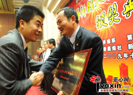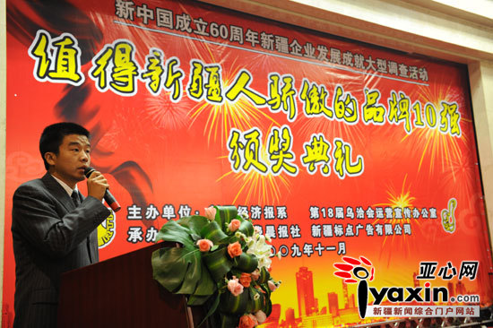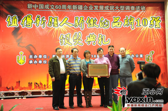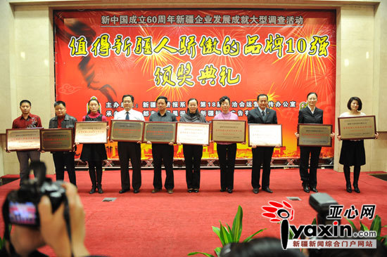 《亞心網(wǎng)》2009.11.09報(bào)道:“值得新疆人驕傲的品牌10強(qiáng)”評(píng)選活動(dòng)頒獎(jiǎng)