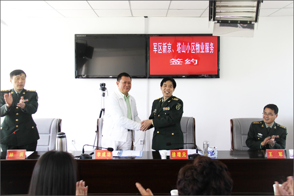 5月3日,新疆軍區(qū)新京、塔山2個(gè)小區(qū)與新疆華景物業(yè)服務(wù)有限公司的簽約儀式在新疆軍區(qū)房管局隆重舉行,新疆華春投資集團(tuán)董事局主席兼總裁李成功先生與軍區(qū)房管局徐增元局長(zhǎng)簽訂了合作協(xié)議,標(biāo)志著雙方結(jié)成戰(zhàn)略合作伙伴。集團(tuán)董事王春容、總裁助理李榮桂、集團(tuán)黨委、工會(huì)、行政辦負(fù)責(zé)人及華景物業(yè)管理團(tuán)隊(duì)等一并參加了簽約儀式。