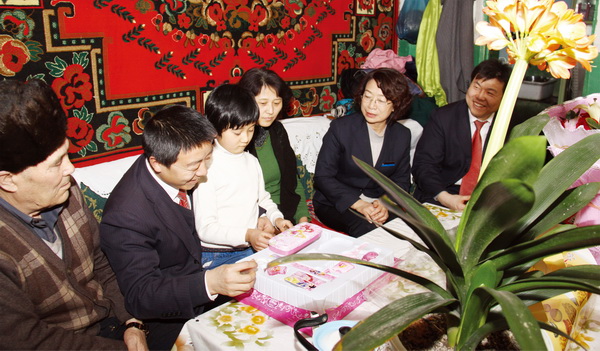 這是在2012年的“三八”國際勞動婦女節(jié)到來之際,華春投資集團工會主席高青、工會委員鄭培君和集團下屬的新疆華景物業(yè)服務有限公司的管理人員一行,帶著華春投資集團總裁李成功先生和華春全員的深情厚誼,特地前往已故員工阿里木·阿吾東的家,看望慰問了其父母與妻子、孩子,送上鮮花和慰問品,致以誠摯的關愛之情并送上節(jié)日的祝福,使已故員工的家屬真切感受到了來自華春集團這個大家庭的關懷和溫暖。