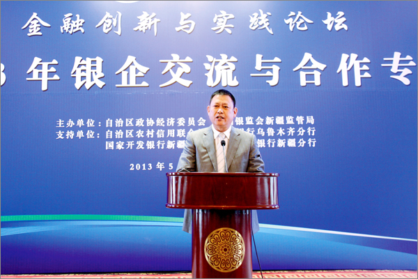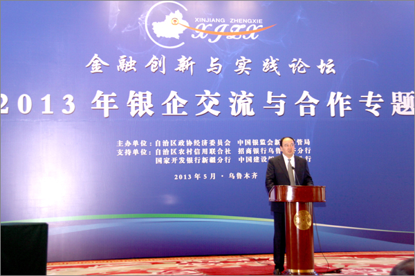 由自治區政協、中國銀監會新疆監管局主辦的首屆新疆金融創新與實踐論壇——2013年銀企交流與合作專題于5月10日在烏魯木齊昆侖賓館隆重開幕。自治區政協主席努爾蘭•阿不都滿金出席論壇并致辭,自治區副主席錢智作重要講話。自治區人大、政府、政協等領導出席論壇開幕。自治區和兵團學者、金融專家、新疆境內多家商業銀行、非銀行金融機構代表,中小微企業、商會負責人等400余人齊聚一堂,20位來自政府相關部門、金融監管和金融機構、小微企業和非銀行金融機構的人士作了專題發言。新疆華春集團李成功總裁、常青副總裁2位代表做精彩演講。