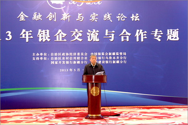 為探索緩解融資難的問題,自治區政協決定舉辦新疆金融創新與實踐論壇系列活動。論壇的基本思路和主要目標是由政協搭建平臺,以委員為發起人,吸引社會各界共同參與,凝聚政府、銀行、非銀行金融機構、企業(單位)、政協委員、專家學者的智慧和力量,發揮他們的作用,合力拓寬融資渠道,創新融資方式,優化融資結構,提高融資速度與效率,加大服務實體經濟的力度,督促改善新疆金融生態環境,完善新疆金融體系,促進新疆金融產業與實體經濟協調發展。
