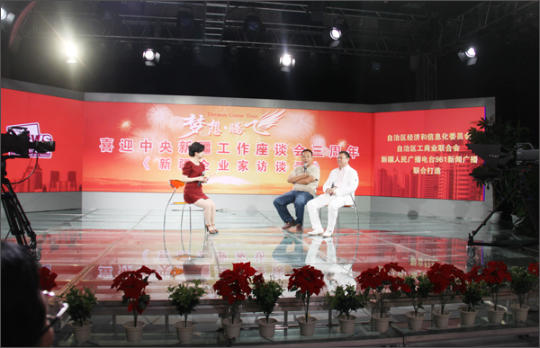 在中央新疆工作座談會(huì)三周年到來之際的5月17日,新疆華春投資集團(tuán)李成功總裁做客由新疆人民廣播電臺(tái)新聞廣播聯(lián)合自治區(qū)經(jīng)信委、自治區(qū)工商業(yè)聯(lián)合會(huì)舉行的“夢(mèng)想騰飛·喜迎中央新疆工作座談會(huì)三周年新疆企業(yè)家訪談錄” 直播現(xiàn)場(chǎng),為80位企業(yè)家代表解讀了企業(yè)在新疆發(fā)展中面臨的機(jī)遇和前景、夢(mèng)想。
