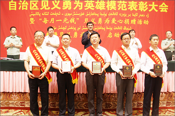 李成功總裁代表為自治區見義勇為事業作出突出貢獻的模范單位和個人在表彰大會上發言。他懷著感恩之情說:“我們只是做了一點力所能及的事,自治區人民政府給予了我們這么高的榮譽,民營企業的發展,得益于黨的好政策、得益于和諧安定的社會環境。而正是這些見義勇為的英雄們,為今天和諧安定的社會,獻出了他們的鮮血和生命,使我們企業有了優美的發展環境,飲水思源,我們要把對見義勇為英雄們的敬仰之情,轉化為弘揚正氣、凝聚正能量、構建和諧社會的強大動力。企業要積極參與支持見義勇為事業、并回報社會,這是所有民營企業家義不容辭的社會責任!希望有更多的民營企業家和社會有識之士,以勇于擔當的時代精神,積極投身于見義勇為事業,慷慨解囊,用實際行動真誠關心、愛護見義勇為者,決不讓為社會安定、人民幸福而流血的見義勇為英雄們流血又流淚、傷身又傷心。形成全社會都來關心、支持見義勇為事業、弘揚見義勇為精神的良好局面,為新疆的跨越式發展和長治久安做出應有的貢獻!讓我們攜起手來,共同激發起全社會的正能量,弘揚正氣,為正義之火添柴加薪!