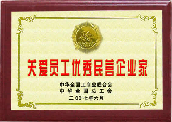 “關(guān)愛員工優(yōu)秀民營(yíng)企業(yè)家”榮譽(yù)證書